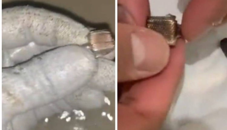 ظهر الشاب في الفيديو وهو يقول: ” الحمد لله عوضني ربي، عثرت على هذا الخاتم ولكن شكله غريب”.