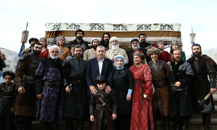 استوعب أردوغان أهمية استخدام الفن لنشر الأيدولوجيا وترويج فكرة معينة ودعم مسلسل “قيامة أرطغرل” بقوة، حيث قام بزيارة موقع تصوير المسلسل التاريخي مع زوجته السيدة أمينة أردوغان.