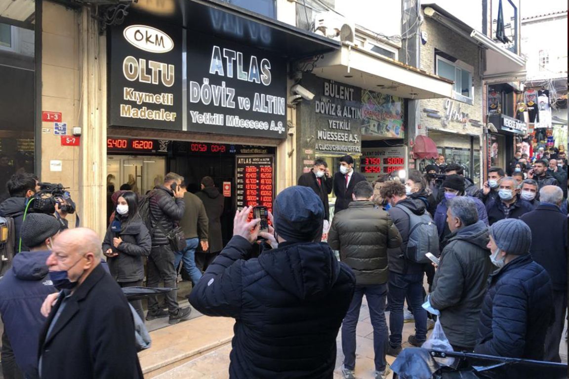 ويشهد سوق العملات المتحركة في البازار حالة من النشاط والحركة نظرًا لارتفاع قيمة الدولار والذهب واليورو. وأبدى بعض المواطنين استعدادهم لتحويل الدولار والذهب إلى الليرة التركية بسبب الحاجة إليها.