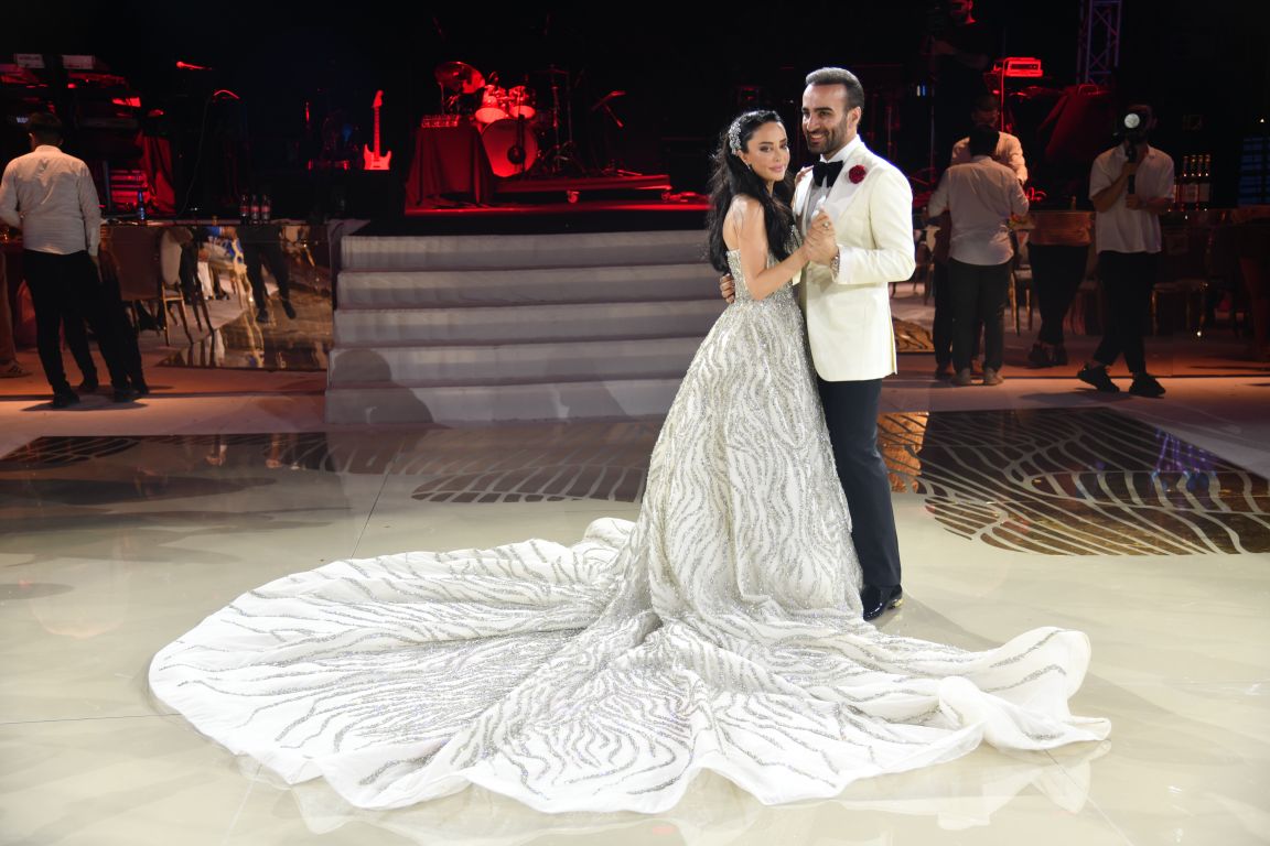 أثار الحفل الضجة الكبرى، بفضل فستان العروس الذي تم صنعه في الهند بقيمة 3 مليون ليرة ووزن 65 كيلوغراما، مرصع بحجارة سواروفسكي الساحرة. وهي حجارة أضفت الكثير من البريق والجمال على الفستان الذي أبهر الحضور وكان بمثابة العنوان الأبرز للحفل.