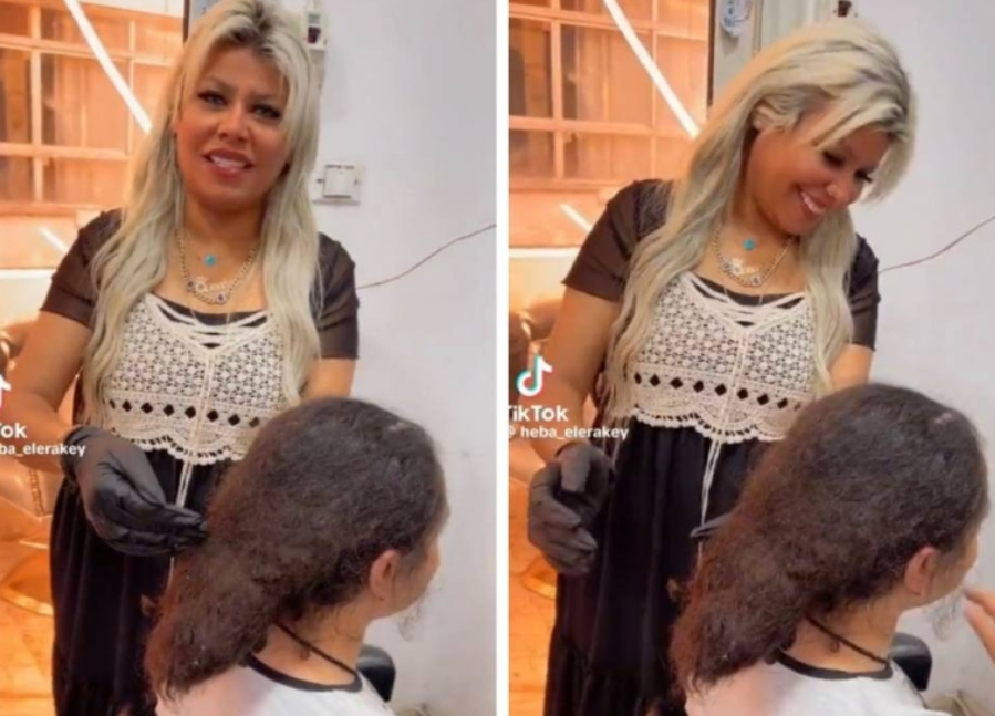 ظهرت الفتاة في الفيديو داخل أحد صالونات التجميل، حيث قامت مصففة الشعر بقص الجزء الأسفل من شعرها لتسهيل تصفيفه.