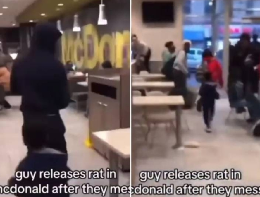 تداول رواد مواقع التواصل الاجتماعي مقطع فيديو لشاب من أصول أفريقية يُطلق “فأرًا” داخل مطعم ماكدونالدز في الولايات المتحدة الأمريكية، مما أثار حالة من الذعر والهلع بين الزبائن المتواجدين.