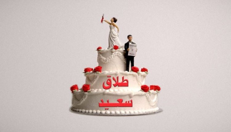 استخدمت السيدة كعكة كبيرة الحجم مكتوب عليها “طلاق سعيد.. مبروك الطلاق” كشكل للاحتفال.