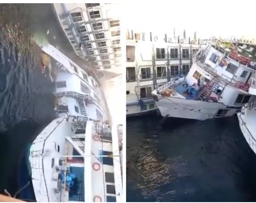 تداول رواد مواقع السوشل ميديا مقطع فيديو يوثق لحظة غرق مركب سياحي في نهر النيل أمام قاعة المؤتمرات بمحافظة الأقصر جنوب مصر.