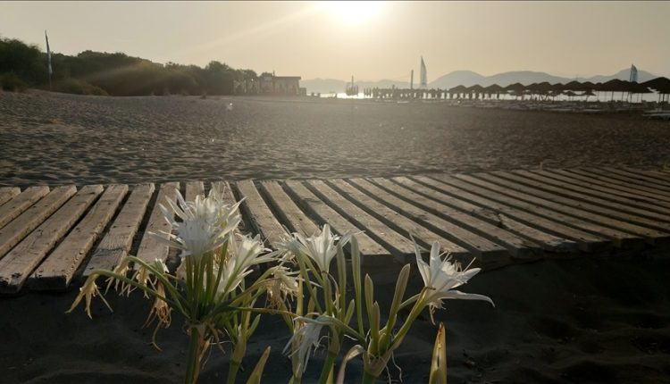 ازدادت شواطئ قضاء أورطاجا في ولاية موغلا السياحية الشهيرة جنوب غربي تركيا جمالاً بعد إضافة أزهار “الزنبق الرملي” النادرة .