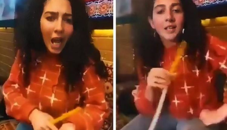 ظهرت الفتاة في الفيديو المتداول تقول: “أنا معايا شيشتي وقاعدة في الكافيه بتاعي وبشرب وبتمزج، تسيبني ما تسبنيش ترجعلي ما ترجعليش أنا اللي كنت بصرف عليك.”