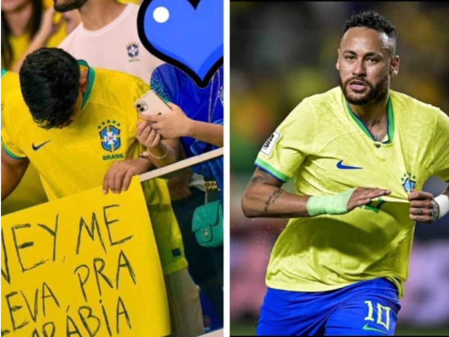 تداول نشطاء مواقع التواصل الاجتماعي صورة مؤثرة لأحد مشجعي منتخب البرازيل وهو يحمل لافتة توجه فيها بطلب إلى مواطنه لاعب الهلال السعودي نيمار دي سيلفا.