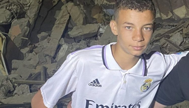 تداول رواد مواقع التواصل الاجتماعي مقطع فيديو يظهر فيه طفل مغربي يبلغ من العمر 14 عامًا وهو يرتدي قميص ريال مدريد ويظهر بين الأنقاض.