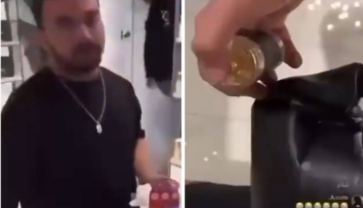 ظهر السائح الإماراتي في الفيديو المتداول على نطاق واسع وهو يصور فيديو خلال تسوقه داخل المحل وقام برش كمية من العطر على حقيبته.