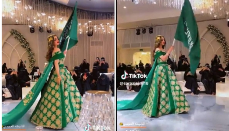 تداول رواد مواقع التواصل الاجتماعي مقطع فيديو يوثق لحظة ظهور فتاة بفستان زفاف باللون الأخضر تزامناً مع احتفالات اليوم الوطني الـ 93.