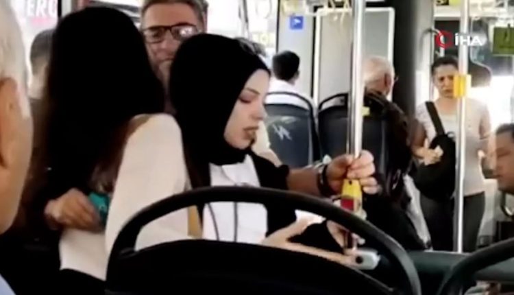 İETT otobüsünde 2 kadın güvenlik görevlisi ve erkek yolcu arasında tartışma..