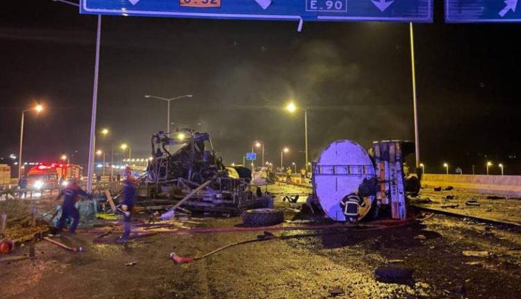 توفي 3 أشخاص وأصيب 11 آخرون في الحادث سير مروع بين شاحنة وحافلة صغيرة بالقرب من تقاطع نارلي على طريق طرسوس – أضنة – غازي عنتاب السريع.