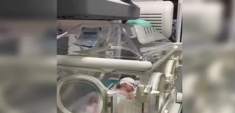 وأظهر مقطع فيديو بثته الجزيرة الطفل الوليد في حاضنة أطفال داخل أحد المشافي.