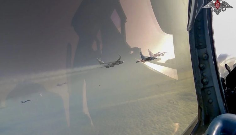 وفقًا لفيديو نشرته وزارة الدفاع الروسية، انطلقت الطائرات المقاتلة لمرافقة طائرة الرئاسة الروسية من طراز إل-96.