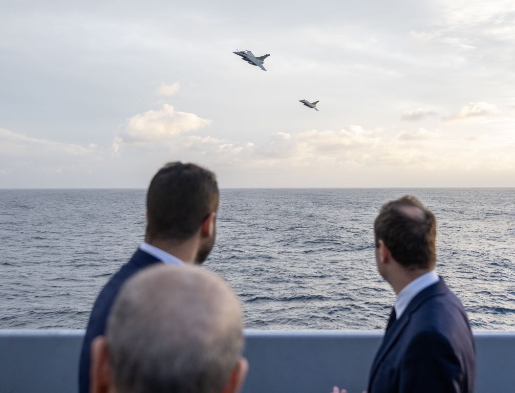 وشهد وزير الدفاع السعودي، تمرين الدفاع الجوي بمشاركة عدد من طائرات الرافال، وقدموا له أثناء التمرين شرحا تضمن قدراتها الدفاعية وإمكانياتها، وما تحتويه من تقنيات وتجهيزات متطورة ومتقدمة، ثم توجه إلى برج القيادة في الفرقاطة، ودون كلمة في سجل زوار الفرقاطة.