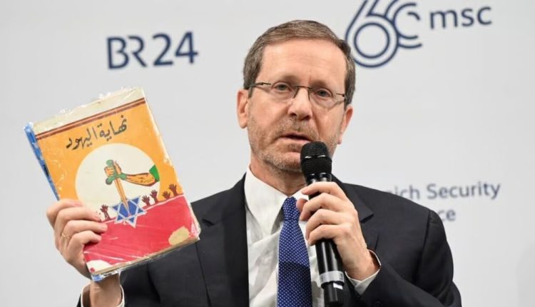 في تصريحات جرت خلال مؤتمر ميونيخ الأمني، أثار رئيس دولة الاحتلال الإسرائيلي، إسحاق هرتسوغ، جدلاً واسعًا بكشفه عن كتاب بعنوان “نهاية اليهود”، والذي زعم أنه عُثر عليه في حي الفرقان بغزة، مُعزيًا تأليفه إلى محمود الزهار. هرتسوغ وصف الكتاب بأنه يُجسد الأيديولوجيا المعادية للسامية، مشيرًا إلى أنه يُعبر عن كراهية لليهود ويدعو إلى تدميرهم، وفقًا لما نقلته صحيفة “يديعوت”.