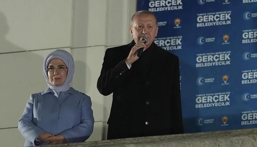 كلمة الرئيس التركي جاءت في خطاب ألقاه من شرفة مقر حزب العدالة والتنمية (الحاكم) بالعاصمة أنقرة، بعد فرز غالبية صناديق الاقتراع في الانتخابات المحلية.