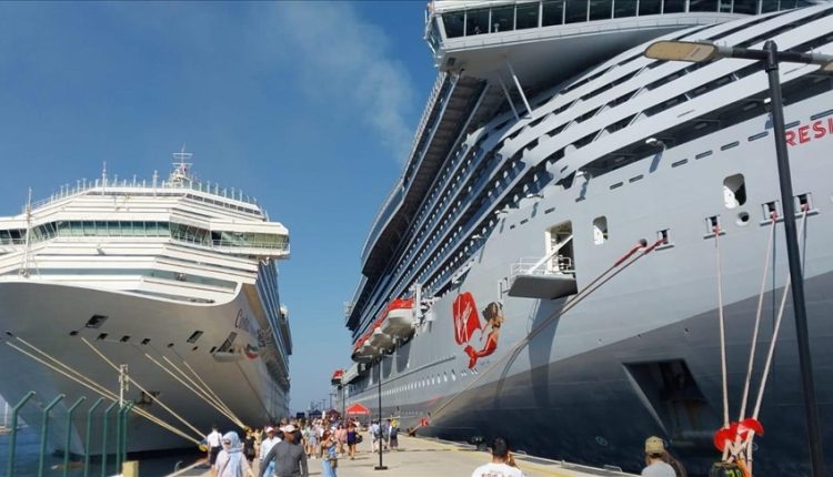 رست سفينتان سياحيتان عملاقتان، في ميناء مدينة بودروم، بولاية موغلا، جنوب غربي تركيا، وعلى متنهما 5 آلاف و397 سائحا.