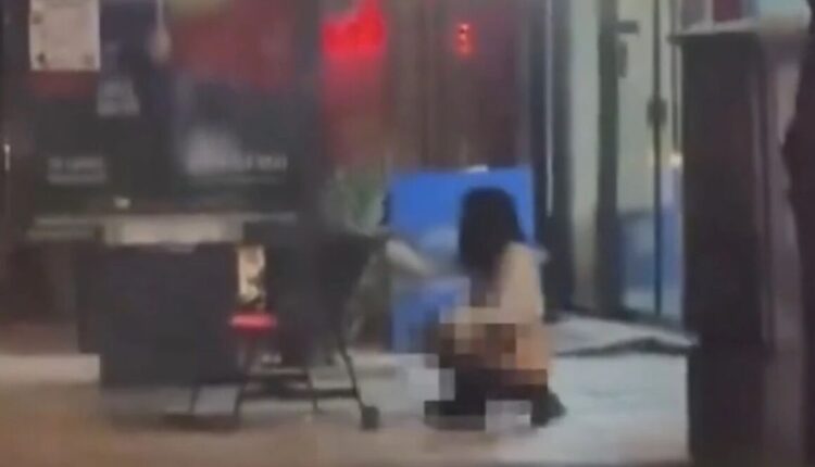 في وقت متأخر من الليل، ظهرت المرأة وهي تتناول رشفة من “البيرة”، ثم قامت بخفض تنورتها وبدأت في فعلتها بشكل صادم.