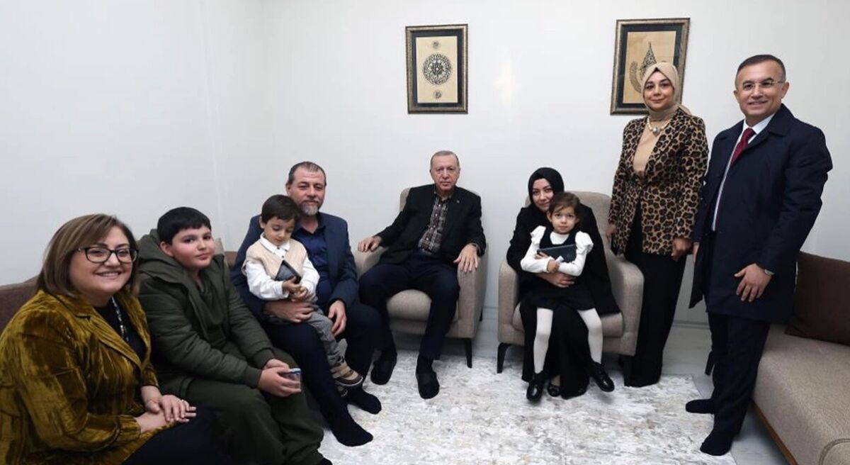 بعد الحفل، زار الرئيس أردوغان عائلة فقدت اثنين من أطفالها في الزلزال الذي ضرب المنطقة. وخلال الزيارة، عرضت العائلة صور الأطفال الذين فقدوا حياتهم، مما أدى إلى لحظات مؤثرة. وتمنى الرئيس أردوغان الرحمة للأطفال الذين توفوا وسأل الأم، التي فقدت ذراعها اليسرى في الزلزال، عن حالتها الصحية. من جهتها، أوضحت رئيسة بلدية غازي عنتاب الكبرى، فاطمة شاهين، أنهم قاموا بتركيب طرف صناعي لها.