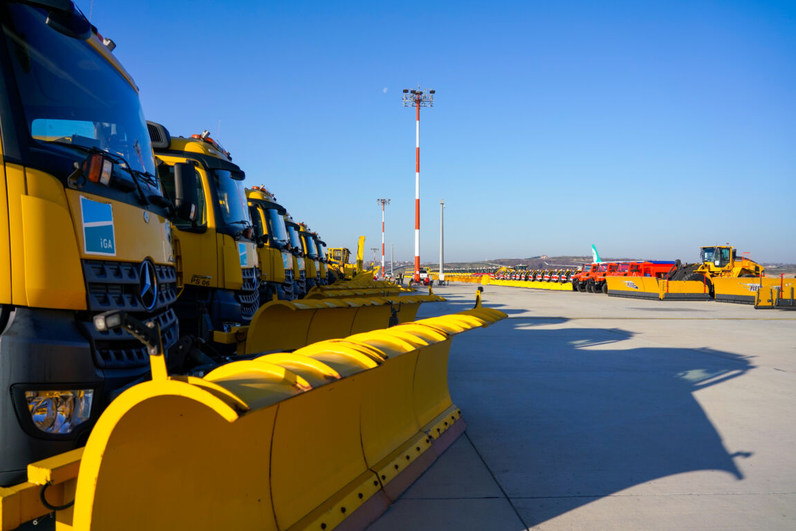 يضم أسطول المطار 179 مركبة لمكافحة الثلوج والجليد، ومنها: 1 مركز قيادة متحرك، 5 سيارات بيك آب مزودة بشفرات ثلج، 34 مركبة قابلة للسحب، 15 مركبة صغيرة، 4 آلات دوارة للثلوج، 10 شاحنات مزودة بشفرات ثلج، و24 مركبة توجيه. جميع هذه المركبات جاهزة للعمل فورًا لضمان سلامة الرحلات الجوية.