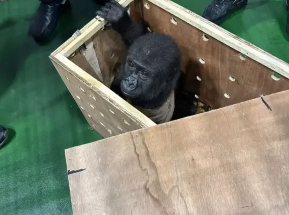وتابعت أنه بعد الفحص تبين أنه في الصندوق قفص يحتوي على صغير غوريلا من نوع مهدد بالانقراض ومدرج في قائمة الملحق الأول لاتفاقية التجارة الدولية بالحيوانات البرية.