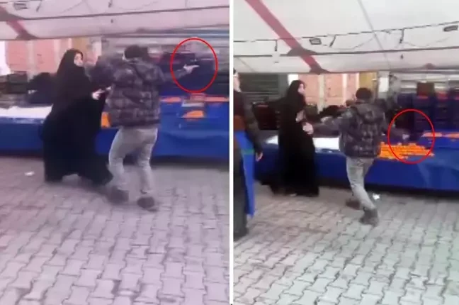 إمرأة تخاطر بحياتها وتقف في وجه شخص حاول إطلاق النار على آخر في إسطنبول (فيديو)