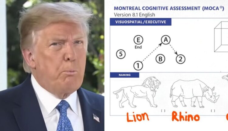 اختبار التقييم المعرفي في مونتريال (MoCA) هو أداة قياس مدتها 10 دقائق تُستخدم للكشف عن مرض الزهايمر ومرحلة الخرف المبكر. يتضمن الاختبار أجزاءً مثل تذكر الكلمات، رسم الساعة، والتعرف البصري. وكان ترامب قد ذكر أنه خضع لهذا الاختبار أيضًا في عام 2020.