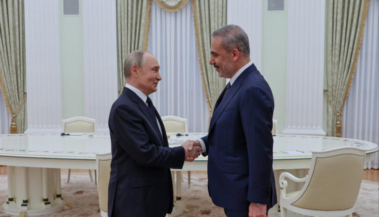 استقبل الرئيس الروسي فلاديمير بوتين، وزير الخارجية التركي هاكان فيدان في قصر الكرملين، حيث جرت مباحثات استمرت ساعة ناقشت سبل إنهاء الحرب القائمة بين روسيا وأوكرانيا.