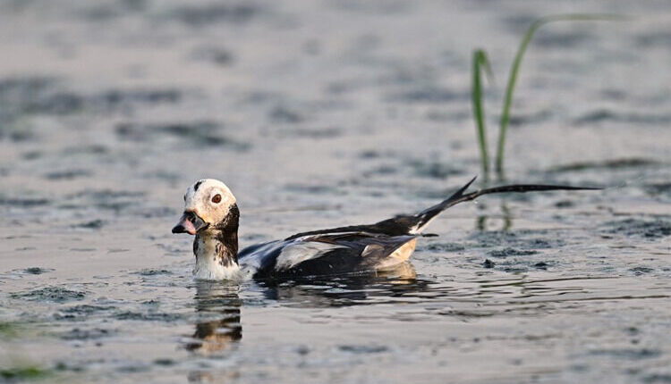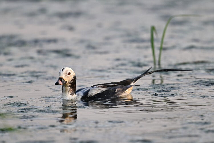 خلال نفس الرصد، شوهدت أيضًا بطة بحرية صغيرة يسهل تمييزها. يتميز الذكر بزيه الشتوي ذي النقشة السوداء والبيضاء، وله ذيل طويل جدًا، ورأس أبيض، وجبهة بارزة، وخدان مرقطان بالسواد. يتباين ريشه الأسود العريض مع اللون الأبيض الذي يغطي معظم جسده. أما الأنثى والذكور الصغيرة، فلونها يميل إلى البني، ووجهها أكثر بياضًا، مع بقعة كبيرة داكنة على الخدين، وتفتقر الأنثى إلى الذيل الطويل. يطير هذا الطائر بسرعة منخفضًا فوق سطح الماء، ويوجد غالبًا في المناطق البحرية والبحيرات.