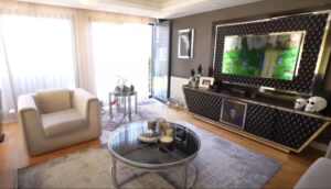 ظهر المنزل ضمن برنامج “جولة منزلية مع إيفريم أكين”، ليكشف عن تصميم عصري يجمع بين البساطة والفخامة، بمساحة واسعة وهندسة معمارية مريحة للعين. ويقع المنزل في مجمع سكني فاخر يتمتع بخصوصية عالية.