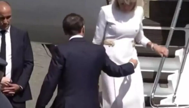 عند وصول طائرة الرئيس الفرنسي إلى الأراضي البريطانية، مدّ ماكرون يده لزوجته بريجيت لمساعدتها أثناء نزولها من الطائرة، إلا أنها تجاهلتها وتشبثت بالدرابزين، في لقطة وثّقتها عدسات الصحافة البريطانية، وانتشرت بشكل واسع عبر المنصات الرقمية، وسط تلميحات إلى توتر في العلاقة بين الزوجين.