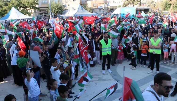 ورفع الحضور الأعلام التركية والفلسطينية وهتفوا بشعارات داعمة لفلسطين.